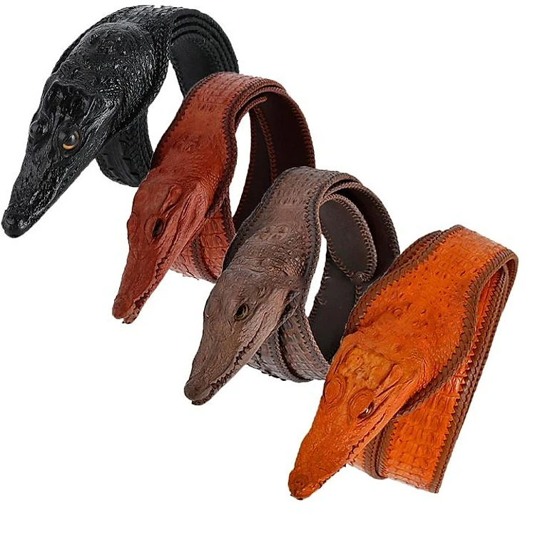 Thắt lưng nam da cá sấu Huy Hoàng nguyên con lớn đầu cá sấu màu đen, nâu đỏ, vàng bò, nâu đất HT4252-53-54-55
