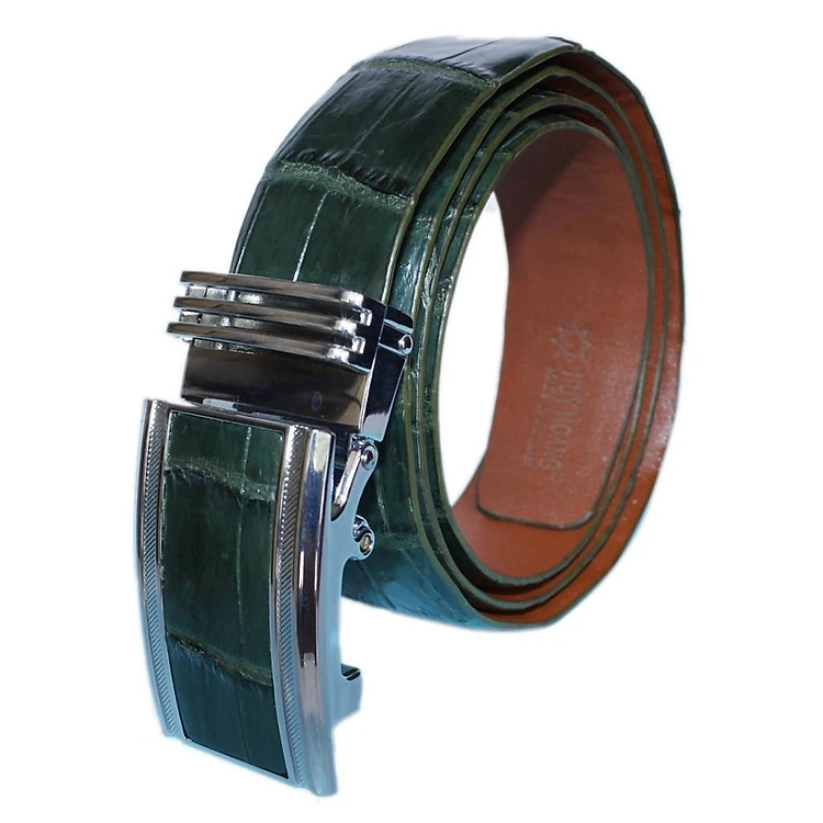 Dây nịt nam da cá sấu Huy Hoàng nguyên con bụng 4P màu xanh rêu HT4827