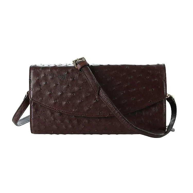 Túi xách nữ da đà điểu Huy Hoàng đeo chéo màu nâu đất HT6433