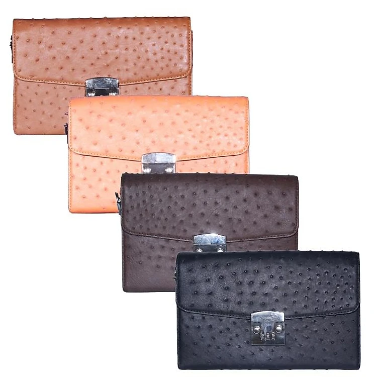 HC6451-52-53-54 - Túi cầm tay nữ Huy Hoàng da đà điểu màu đen, nâu đất, vàng bò, nâu đỏ