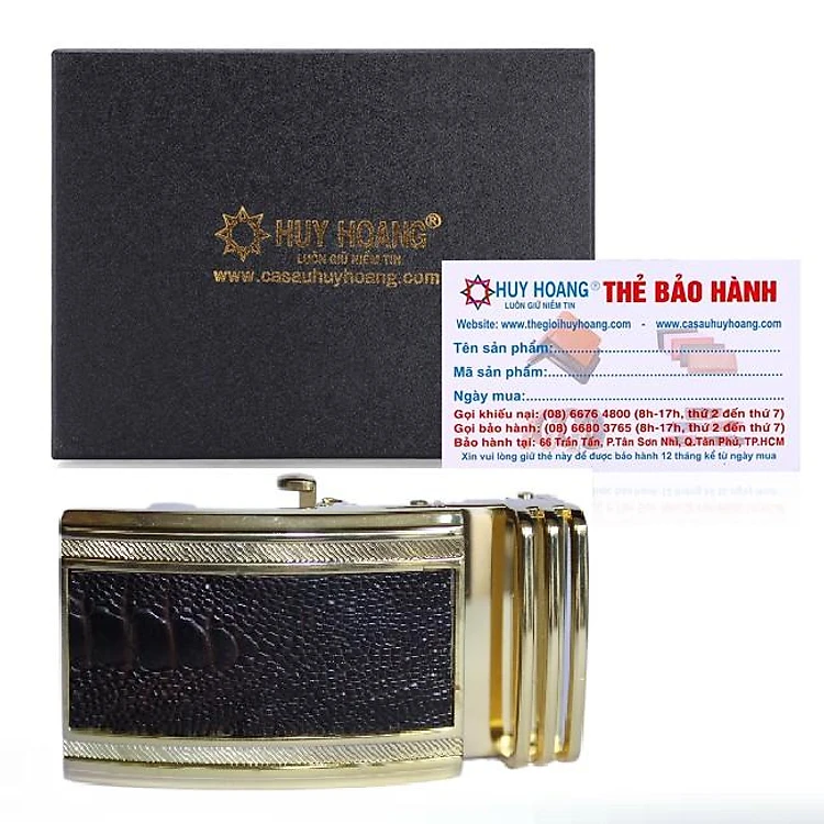 Đầu khóa da đà điểu Huy Hoàng 4P đầu vàng màu nâu đất HT9414