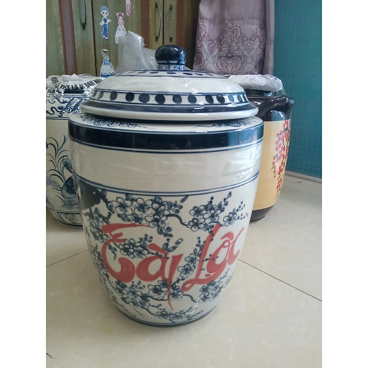 Hũ đựng gạo tài lộc nem trắng gốm sứ Bát Tràng loại 15Kg
