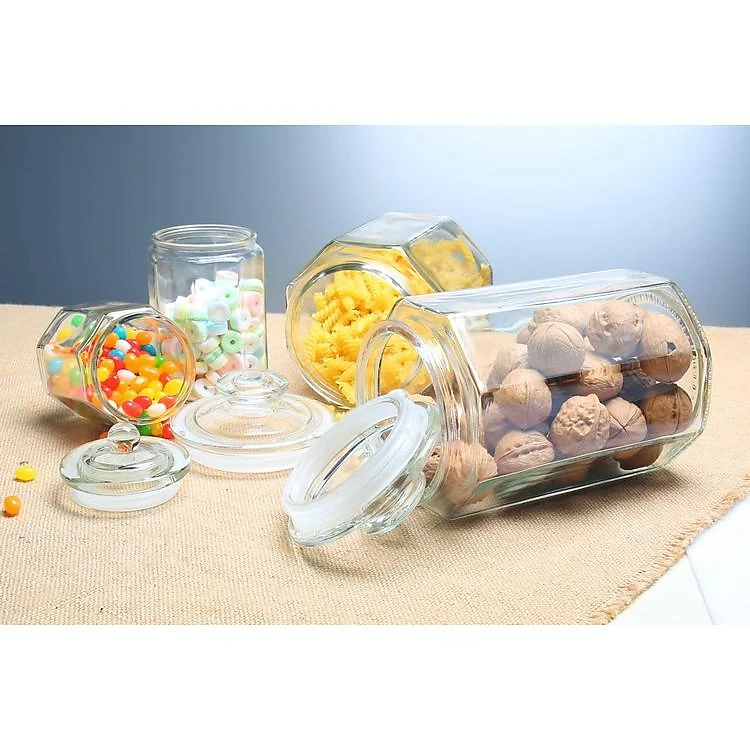 HŨ ĐỰNG GIA VỊ THỦY TINH LỤC GIÁC 380ML NẮP NÚM