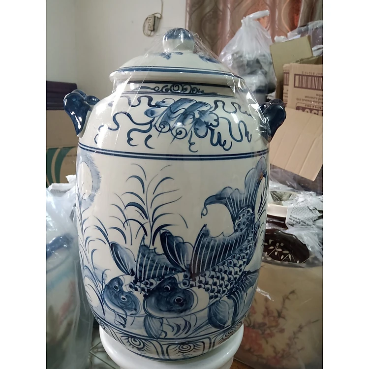 Hũ đựng rượu gạo vẽ cảnh gốm sứ Bát Tràng loại 15L