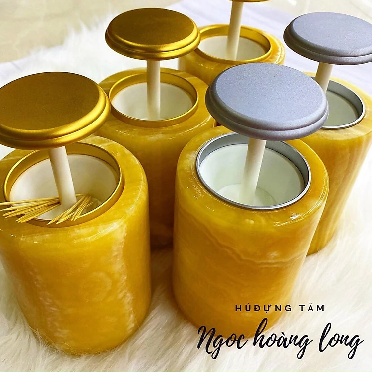 Hủ đựng tăm đá ngọc hoàng long - Cao 11cm