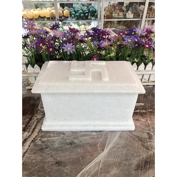 Hủ đưng tro cốt phật giáo đá cẩm thạch trắng