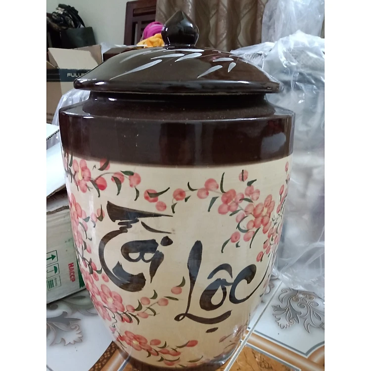Hũ gạo tài lộc hoa đào Bát Tràng loại 15Kg