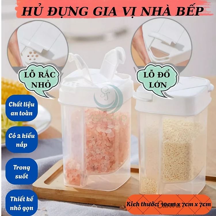 Hũ Gia Vị Đa Năng 3 Ngăn Nắp Gạt Thông Minh- Lọ Đựng Gia Vị Mini Đa Dụng Chia Ngăn- Hộp Đựng Muối, Đường, Tiêu 3 Trong 1- Hũ Gia Vị Nắp Đậy Tiện Dụng Có Lỗ Rắc