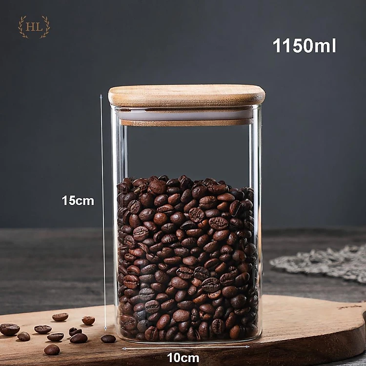 Hũ Thủy Tinh Vuông Nắp Gỗ Tre Kín Hơi Đựng Thực Phẩm, Gia Vị Tiện Dụng