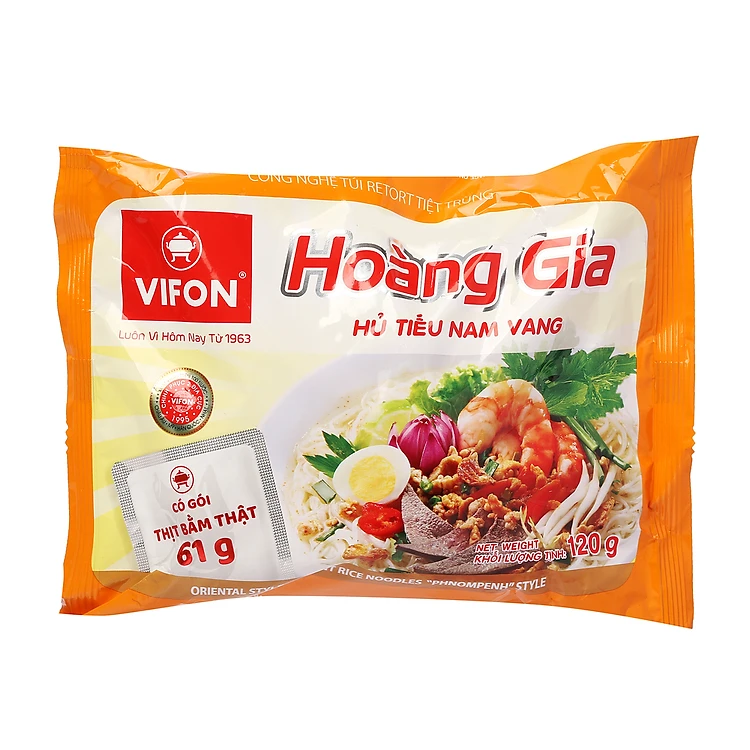 Cực tiện lợi và thơm ngon. Hủ tiếu Nam Vang Vifon Hoàng Gia gói 120g là sản phẩm hủ tiếu ăn liền của Vifon mang hương vị đặc trưng của hủ tiếu Nam Vang thấm đều trong từng sợi hủ tiếu dai ngon đậm đà cực đã cùng mùi hương hấp dẫn lôi cuốn không thể chối từLoại hủ tiếu: Hủ tiếu nước