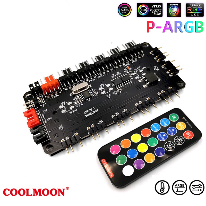 HUB Aura Sync P-ARGB Coolmoon cho Fan Led RGB và đèn Led RGB đồng bộ Mainboard máy tính - hàng nhập khẩu