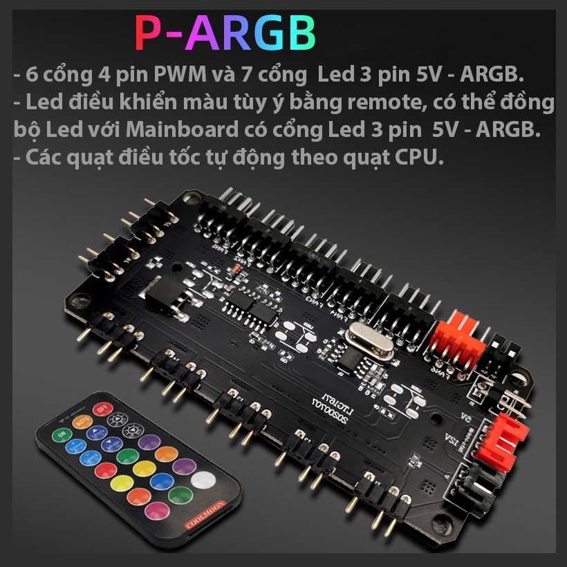 - HUB Aura Sync P-ARGB Coolmoon cho Fan Led RGB và đèn Led RGB đồng bộ Mainboard máy tính
