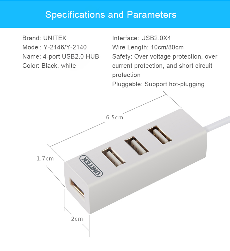 - Hub Chia 4 Cổng USB 2.0 UNITEK Y-2160 tương thích với máy tính xách tay khác Macbook và các thiết bị khác như ổ đĩa flash USB bàn phím thẻ WLAN chuột; có thể kết nối điện thoại di động Iphone HTC và khác để sạc và truyền dữ liệu.
