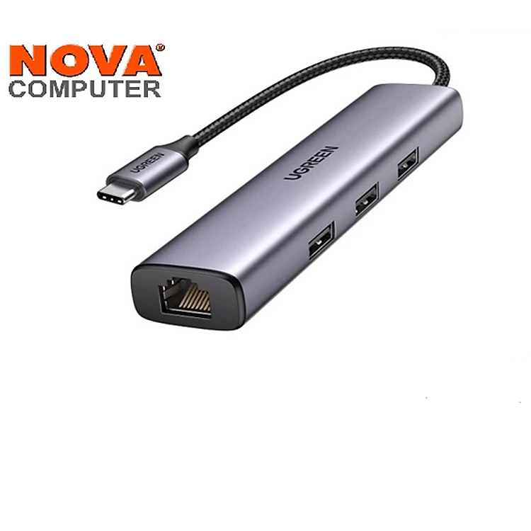 Hub chia USB Type-C ra 3 cổng USB 3.0 Type-A kèm Lan Gigabit vỏ nhôm Ugreen 60600 - Hàng chính hãng