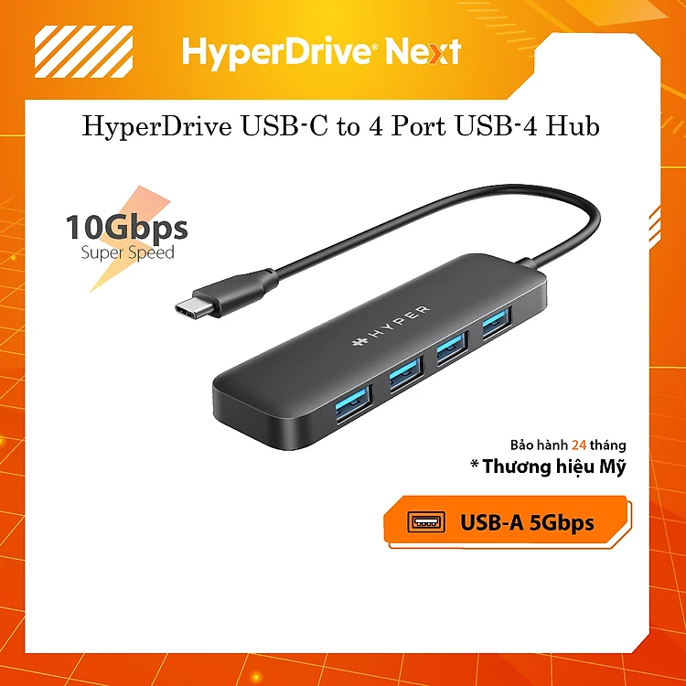 HUB chuyển đổi HyperDrive Next 4 In 1 Usb-A Port cho Macbook/ Laptop - Thiết kế 4 cổng truyền dữ liệu tốc độ cao HD5002 - Hàng Chính Hãng
