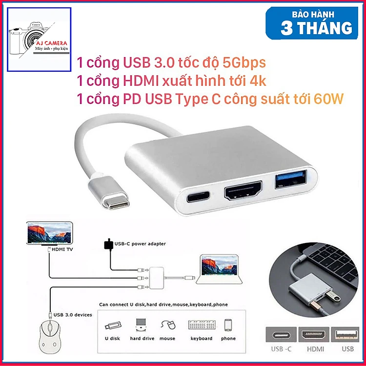 Cổng chuyển đổi đa năng USB Type-C 3in1 sang HDMI / USB 3.0 / USB-C