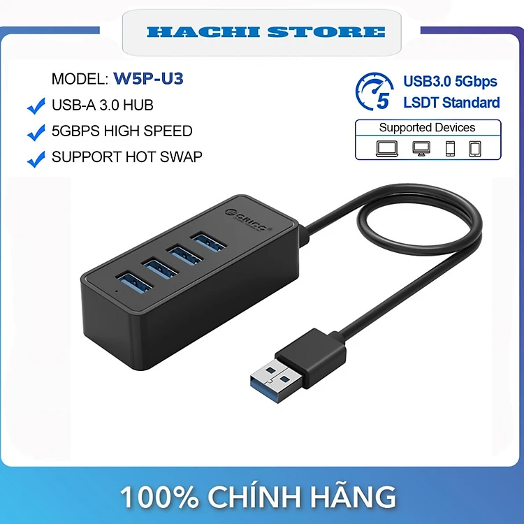 Hub USB 3.0 Orico 4 Cổng W5P-U3 - Hàng Chính Hãng