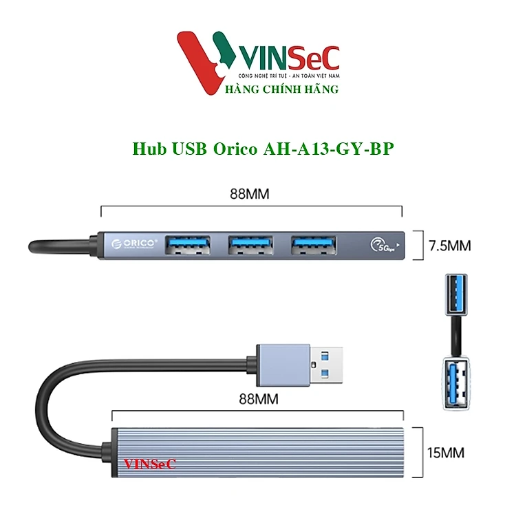 Hub USB ra 4 cổng USB 3.0 và 2.0 bằng nhôm Orico AH-A13-GY-BP - Hàng Chính Hãng