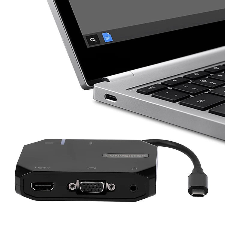 - Bộ mở rộng cổng USB type-C sang HDMI và Hub USB 3.0 được thiết kế để kết nối MacBook có cổng USB-C với màn hình hiển thị có cổng HDMI với độ phân giải lên đến Full HD 4K/1080p