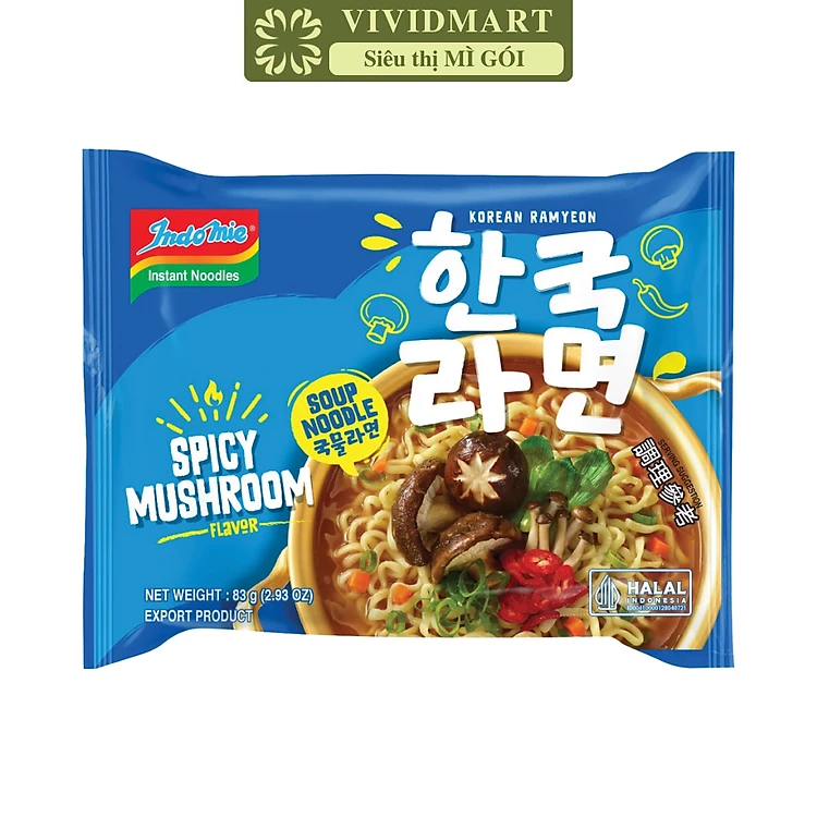 INDOFOOD - Mì Indomie Hàn Quốc hương vị Nấm cay, Mì nấm cay Indomie, Mì Indomie nấm cay Hàn Quốc (83g/gói)