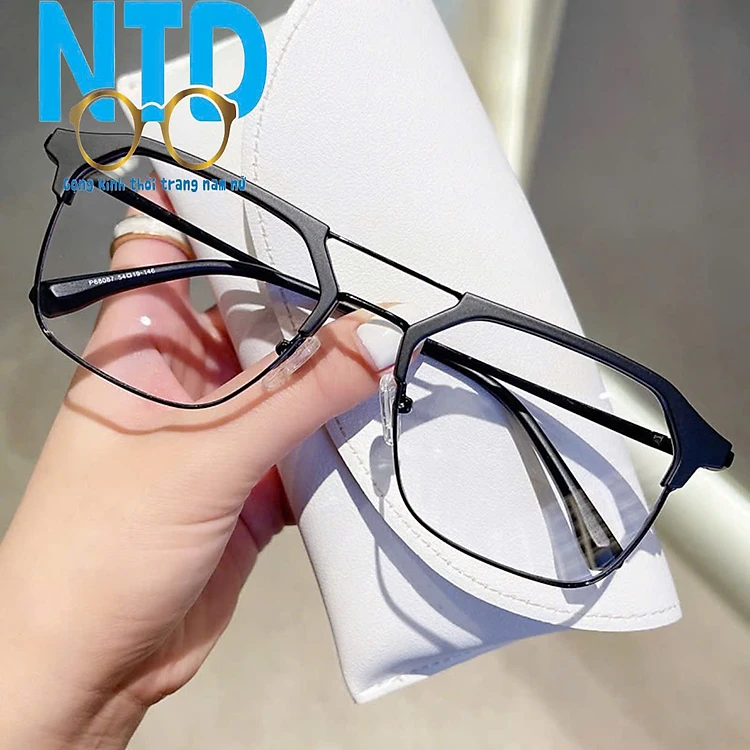 ính giả cận, Gọng kính cận NTD001 nửa viền nam nữ phong cách Hàn Quốc chống tia UV400