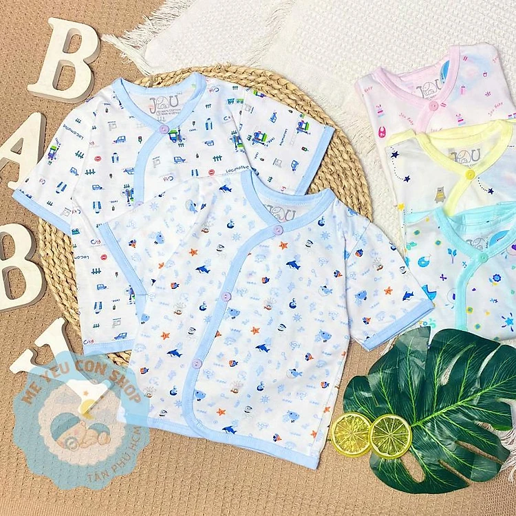 (J10TN) Áo Cài Xéo Họa Tiết Ngắn Tay Chất Cotton Cho Bé Sơ Sinh 3-9kg - Hãng JOU
