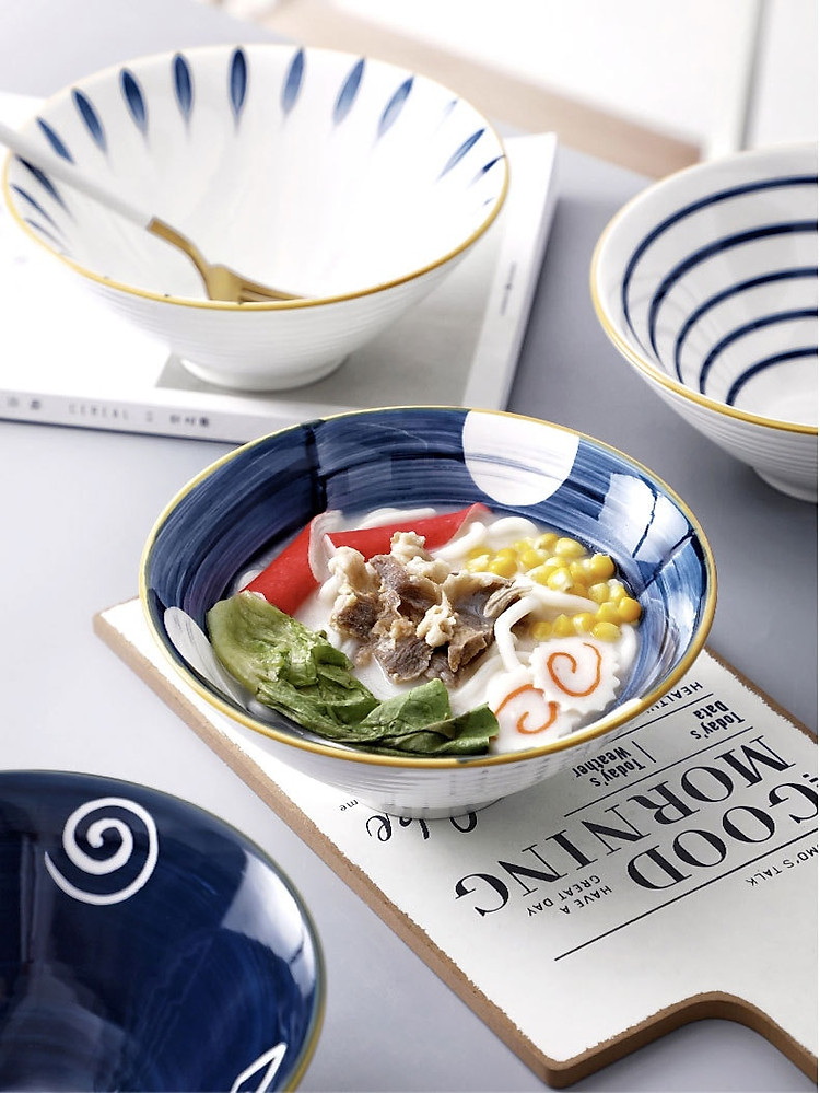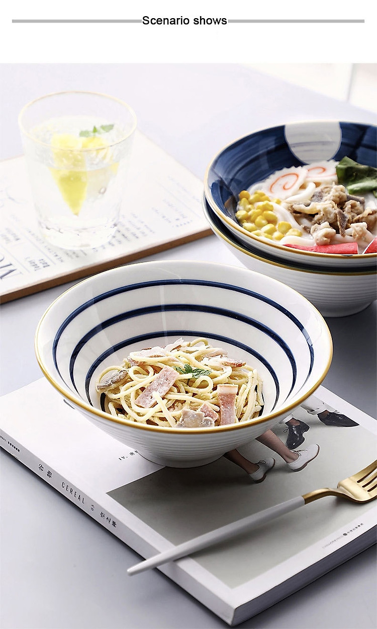 Japanese 8 inches ceramic ramen bowl kitchen Tableware household Soup mixing rice cereal bowl set cute fruit salad Bowls