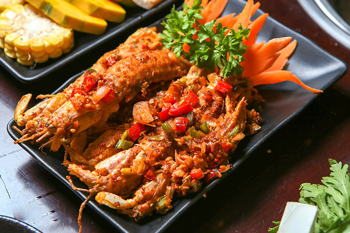 Hấp dẫn nhất trong thực đơn hơn 50 món là các món nướng từ bò Mỹ, các loại hải sản như tôm, cá thu đao, hay mực nang bầu.