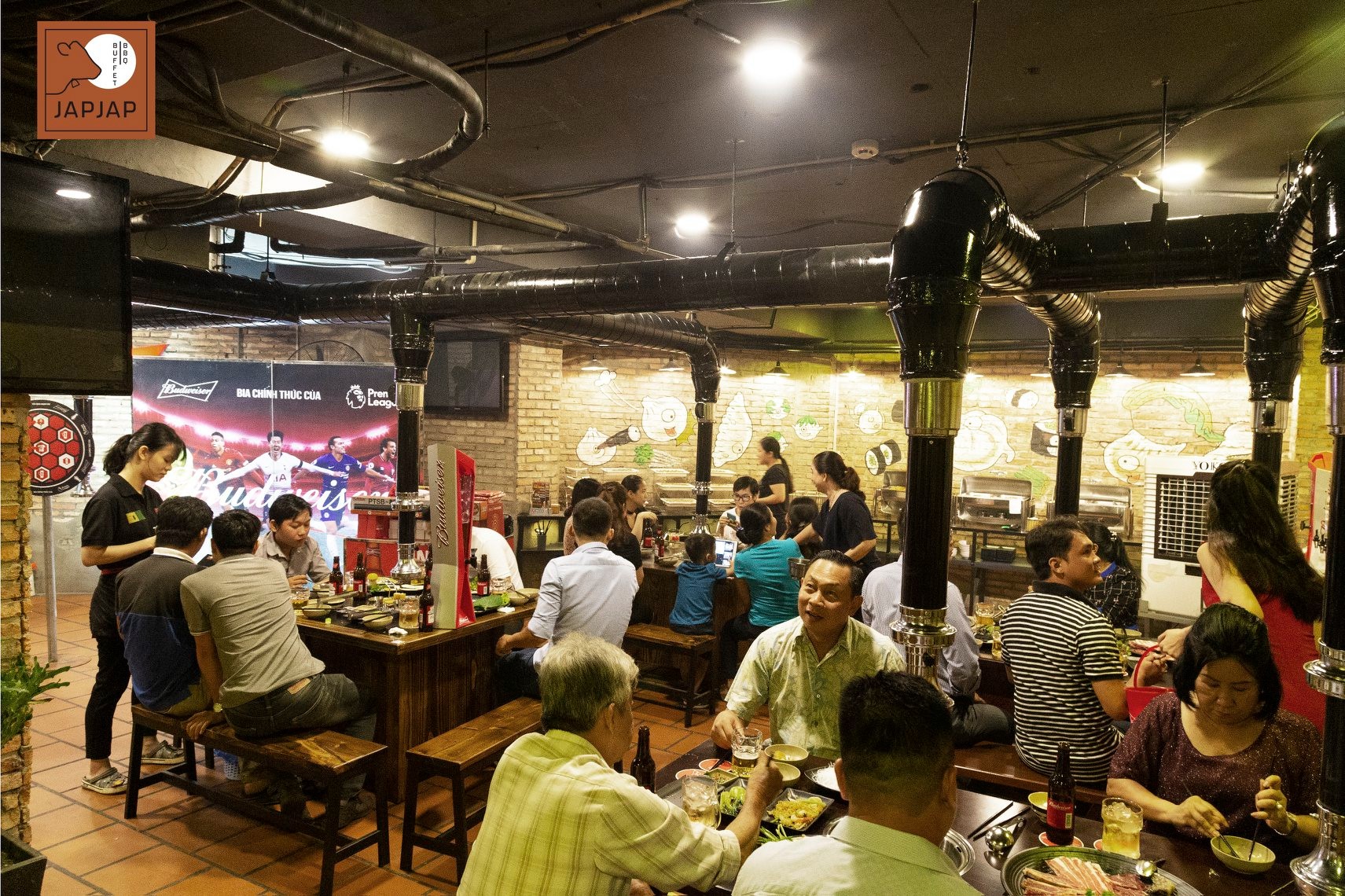 JapJap BBQ - điểm đến không thể bỏ qua cho dân ghiền đồ nướng, một bữa tiệc BBQ hoành tráng cùng JapJap với những món thịt nướng chất lượng từ bò Mỹ, hải sản, rau ăn kèm phong phú và lẩu gà tiềm đông trùng hạ thảo, sâm tươi bổ dưỡng trong không gian ẩm thực rộng rãi ngay tại trung tâm Quận 5 sầm uất.