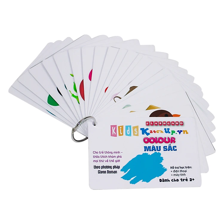 - KatchUp Flashcard Tiếng Anh Cho Bé - Màu Sắc - High Quality gồm khoảng 20 thẻ in từ vựng. Trong vô vàn những phương pháp ghi nhớ từ vựng hiện nay thì phương pháp học từ vựng bằng Flashcard là cách tốt giáo dục sớm cho trẻ từ 0-6 tuổi. Ngoài ra, bộ KatchUp Flashcard Tiếng Anh Cho Bé sử dụng giấy màu trắng dày, chất lượng ép plastic hai mặt và tặng kèm code học online để phụ huynh và bé có thể vừa học vừa chơi ghi nhớ từ nhanh chóng không gây nhàm chán.