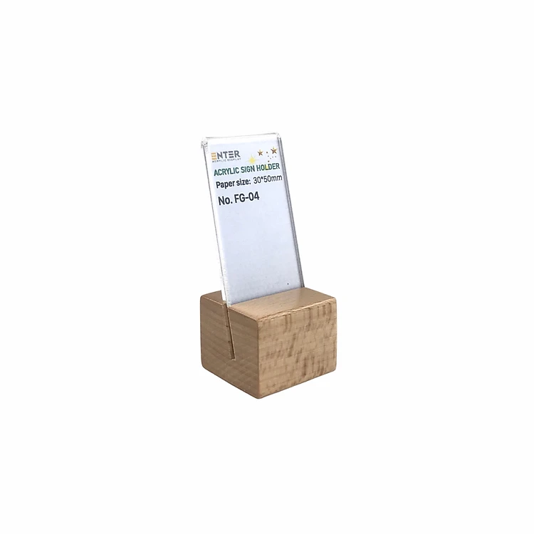 Kệ mica 1 mặt đế gỗ Enter FG-04 30x50mm, Kệ thông tin sản phẩm, Standee mica để bàn, Bảng quét mã QR Code