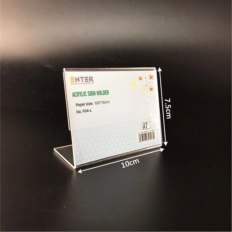 Kệ mica 1 mặt Enter F04-L 100x75mm A7 ngang, Kệ menu chữ L, Khung thông tin sản phẩm, Khung bảng giá, Kệ trưng bày để bàn