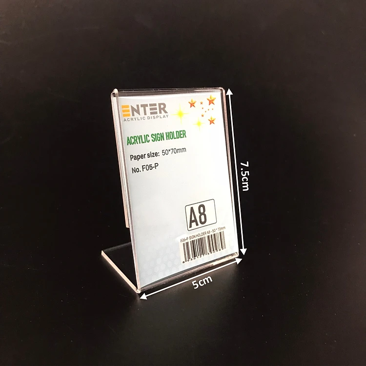 Kệ mica 1 mặt Enter F05-P 50x70mm A8 đứng, Kệ menu chữ L, Khung thông tin sản phẩm, Khung bảng giá, Kệ trưng bày để bàn