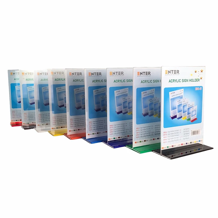 Kệ menu nhà hàng, Standee mica để bàn, Bảng quét mã QR Code, Kệ mica 2 mặt Enter E06-U 210x300mm đế lùa uốn bằng