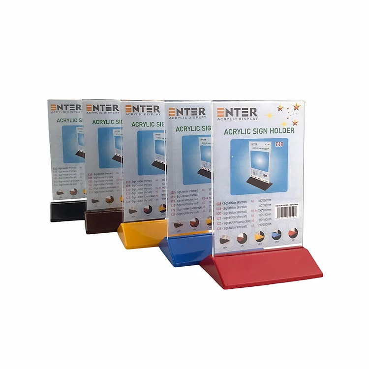 Kệ mica 2 mặt Enter E18 100x150mm đế màu, Kệ menu nhà hàng, Standee mica để bàn, Bảng quét mã QR Code