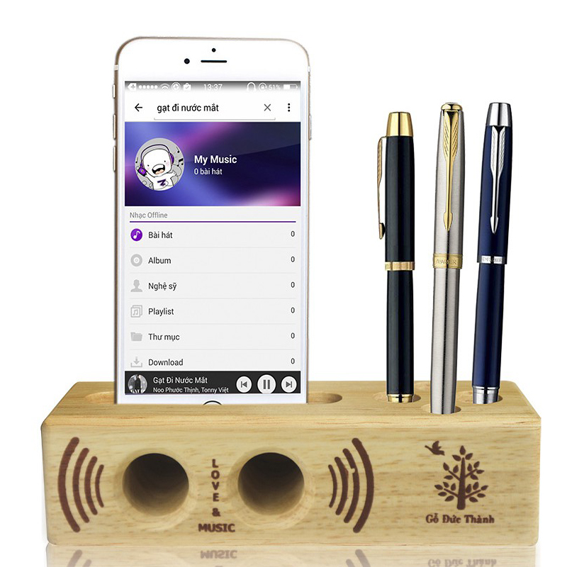 Đế Đựng Điện Thoại, Bút Viết 2 trong 1 Gỗ Đức Thành