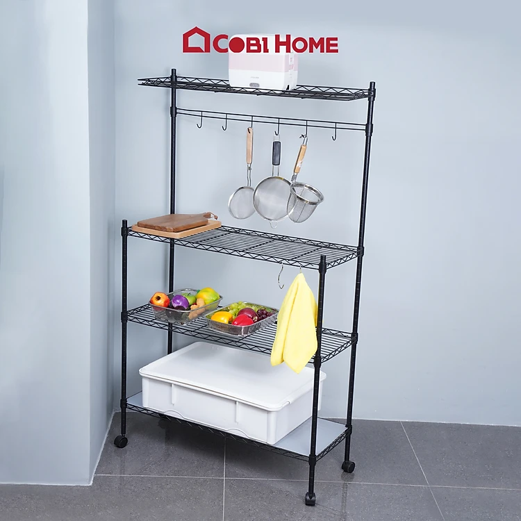 Kệ sắt đa năng 4 tầng dùng trong nhà bếp – màu đen – CJ-B1509B