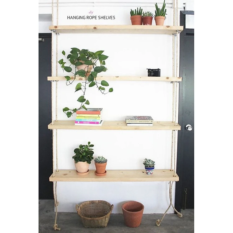 Kệ 4 Tầng Treo Tường Trang Trí Bằng Dây Thừng Trang Trí Gỗ Thông Tự Nhiên (Kệ không bao gồm các sản phẩm khác)