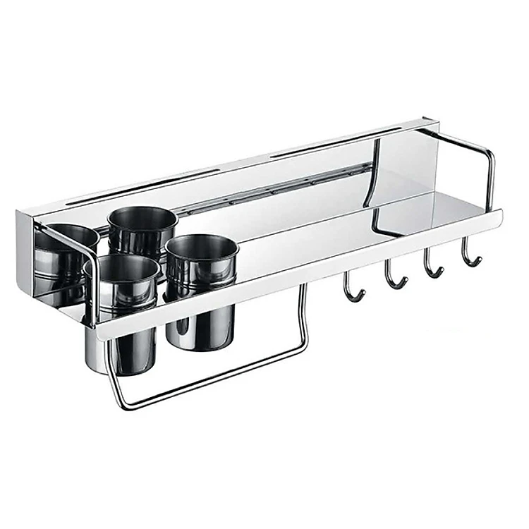 Kệ được thiết kế với các móc treo, có thể treo thớt, muỗng, vá, cùng đồ dùng nhà bếp vô cùng tiện lợi.