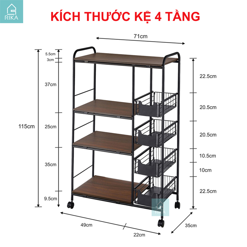 * THÔNG SỐ KỆ ĐA NĂNG 4 TẦNG RIKA: