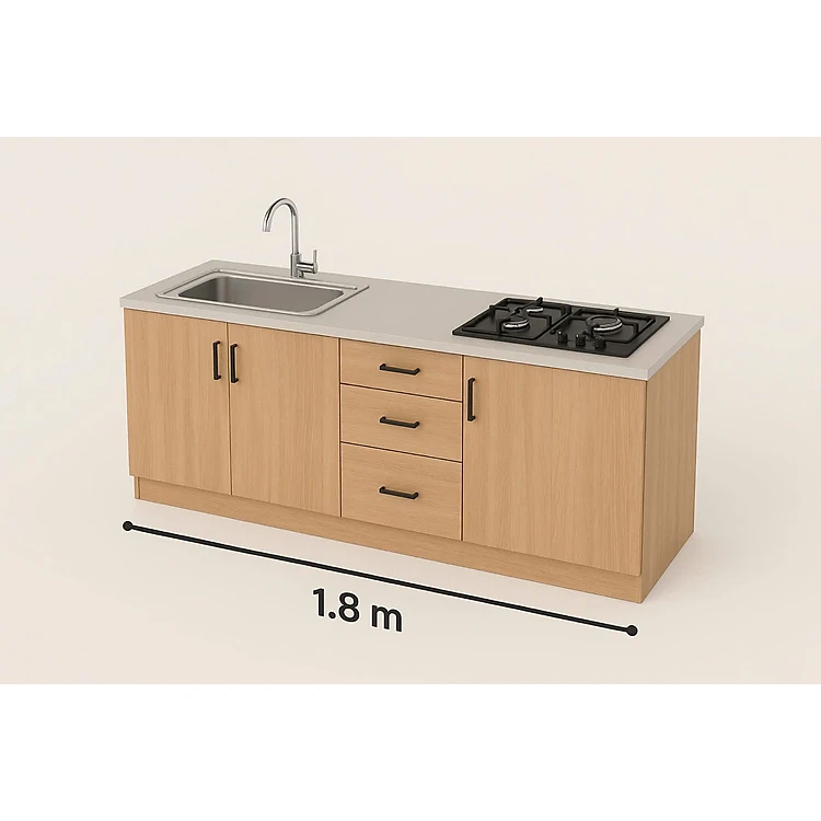 Kệ bếp Juno Sofa lắp ráp sẵn kèm bồn rửa đơn, bề mặt ốp gạch, khung nhựa màu gỗ sồi.