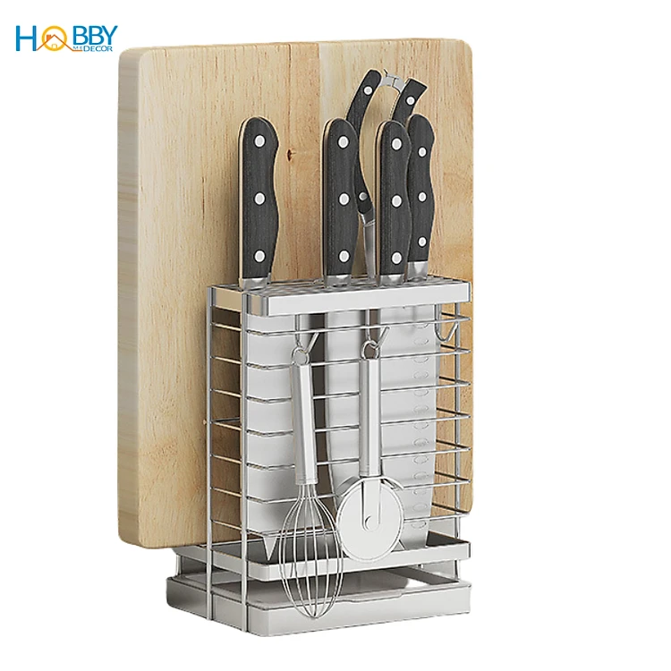 Khay cắm dao thớt kèm 3 móc treo đồ Hobby Home Decor DD2N3 chuẩn Inox 304 không rỉ sét - kèm khay hứng nước