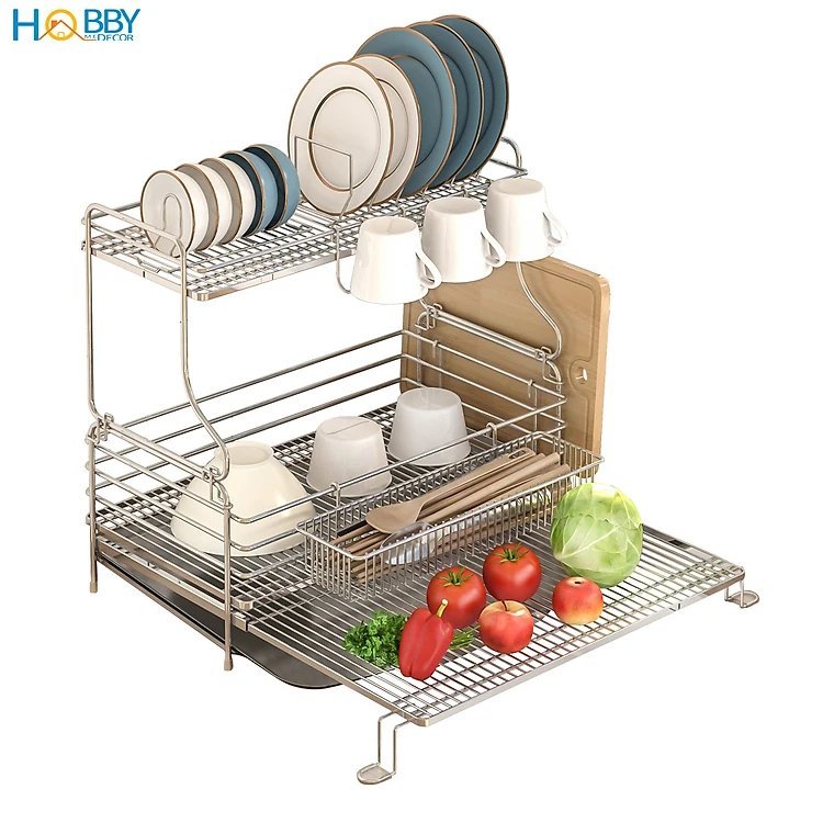 Kệ chén 2 tầng đa năng co giãn inox 304 cao cấp Hobby home decor KC5