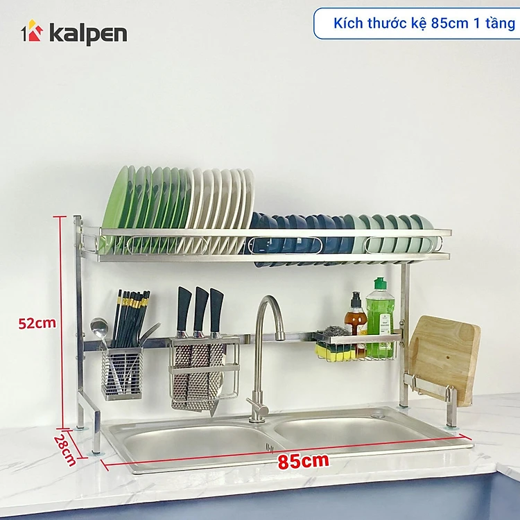Kệ chén bát Inox 304 trên bồn rửa thông minh Kalpen size 85cm hàng chuẩn Đức
