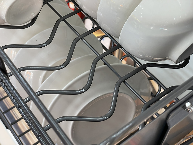 Ngay phía trên ngăn để chén là ngăn để dĩa thiết kế thông minh, chia tách dĩa bằng các nan đồng đều. Bên trong sẽ có gờ cao giúp đỡ dĩa, tránh làm dĩa bị xô lệch gây rớt hoặc phát ra tiếng kêu do va chạm