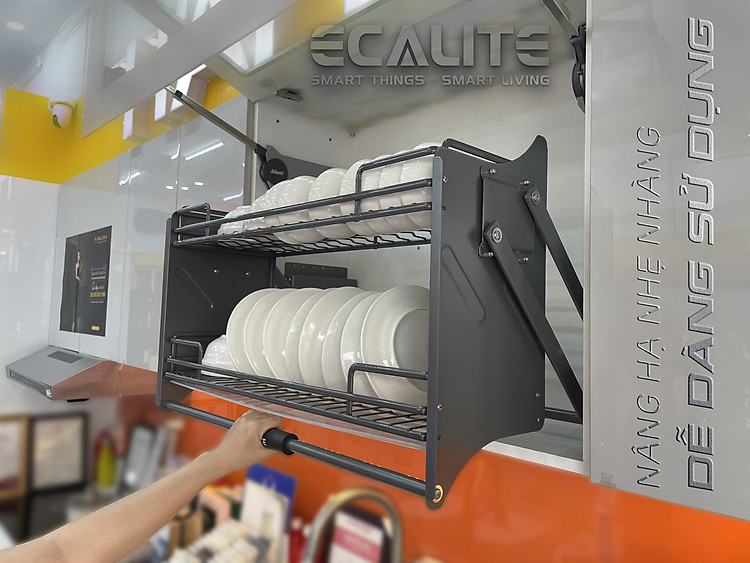 Kệ chén Ecalite được trang bị hệ thống trợ lực thông minh, có thể điều chỉnh mức lực nặng nhẹ theo yêu cầu của từng người sử dụng.