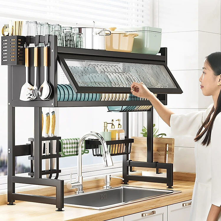 Kệ chén đĩa bát có nắp đậy 2 tầng sạch sẽ chống bụi cho nhà bếp tiện lợi