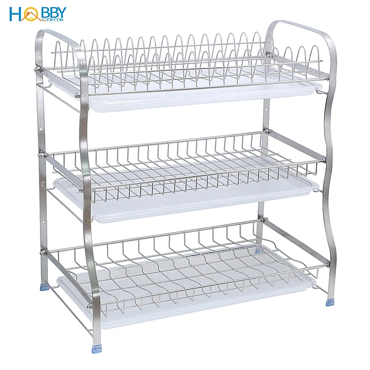 Kệ chén Inox 3 tầng Hobby home decor KC3T cao cấp kèm khay nhựa hứng nước - lắp ráp tiện dụng - không rỉ sét