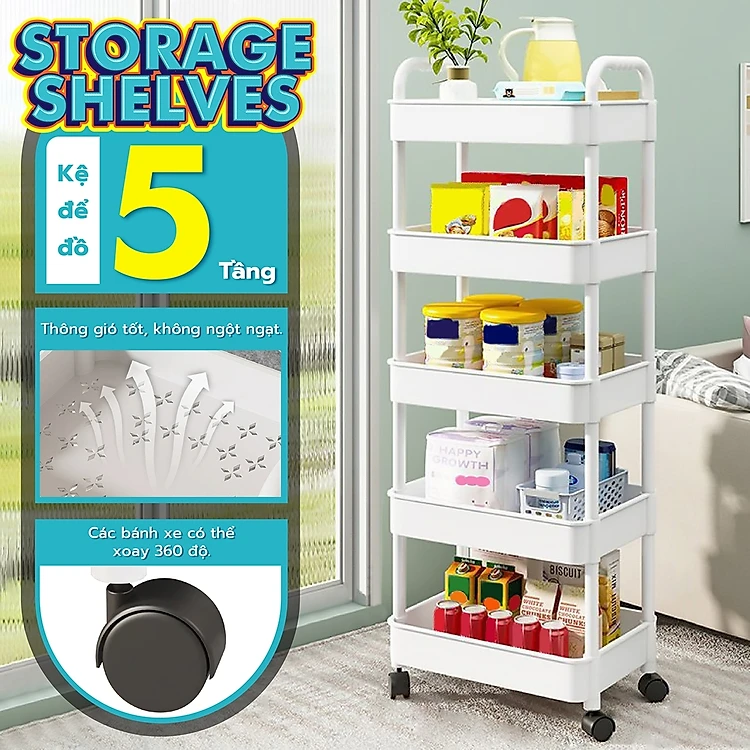 [4026] BG Kệ đa năng 3/4/5 - bánh xe, giỏ đựng đồ, Dễ dàng di chuyển giá sách đa năng,Kệ đa năng có bánh xe, di chuyển tiện lợi (hàng nhập khẩu)