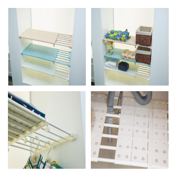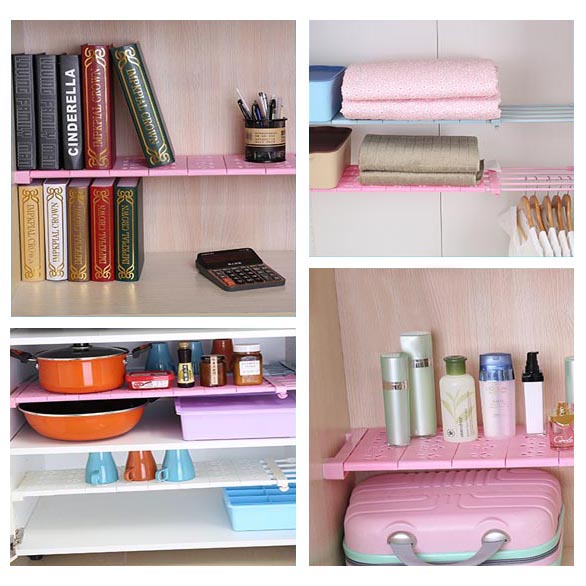 Bộ Kệ đa năng chia ngăn tủ có thể điều chỉnh độ ngắn dài tùy ý, cho bạn đặt trong các kệ tủ lớn, chia làm nhiều ngăn kệ nhỏ phân loại các vật dụng khác nhau.